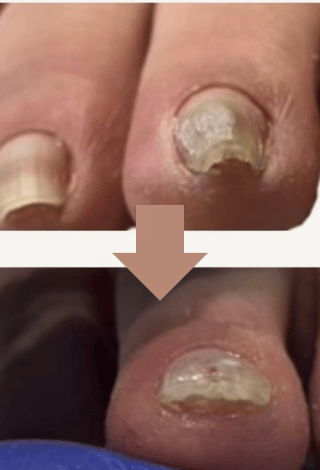 月1回の施術で、6〜10回が目安です。爪の状態によって個人差はありますが、再発しにくい状態を目指して段階的に改善していきます。