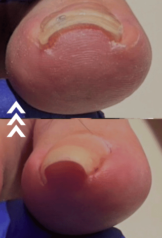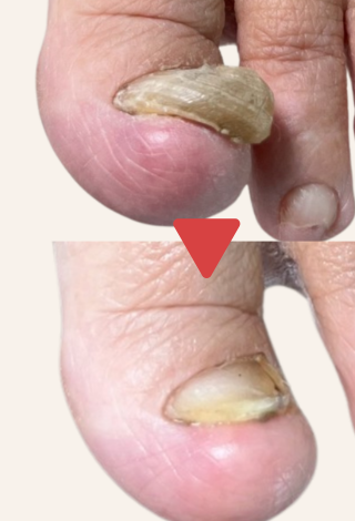 ご覧になって分かる通り、巻き爪の角度がだいぶ改善しました。
