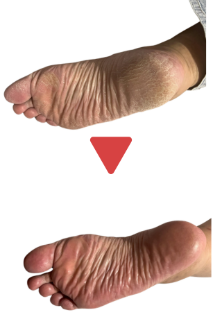 50代女性、かかとの角質が靴下などに引っかかり痛みを感じていました。